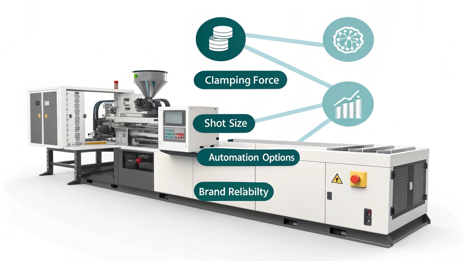 Select a machine based on part size, production volume, material type, and budget. Matching clamping force and shot size to your product is critical.